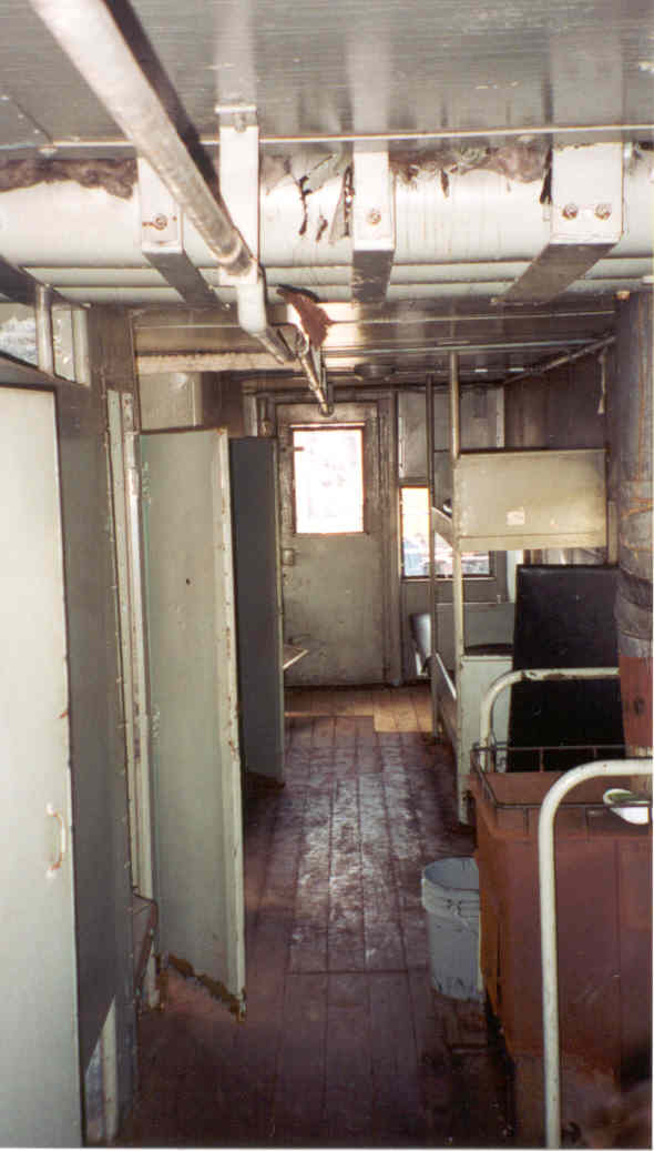 Caboose was acquired from Conrail in 1987, and is used in regular freight service on the Owego & Harford Railway in Owego, NY. Car has current air brake COTS, roller bearing trucks (built in 1976). Interior appointments include two conductor's desks (one in each end of the car), four person dinette, fuel-oil fired cooking and heating stove, sink and toilet w/ retention tank (needs to be serviced if you plan to use the toilet system), three full-length bunks (two of which need cushions), icebox, and plentiful storage. Lights operate on 12VDC battery bank and axle-driven generator. Functional rear marker lights located on each end. Windows are plexiglas and most need to be replaced due to UV clouding. Bays contain two high-backed, "walk-over" seats for viewing the train ahead.