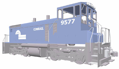 A General Motors Electro-Motive Division (EMD) SW-1500 locomotive, computer-modeled in 3-D for use in an animated reenactment of a yard derailment.